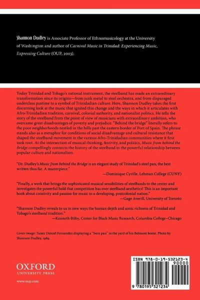 A symbol of Trinidadian culture, the steelband has made an extraordinary transformation since its origins-from junk metal to steel orchestra, and from disparaged underclass pastime to Trinidad and Tobago's national instrument. Now, Shannon Dudley gives the first discerning look at the musical thinking that ignited this transformation, and the way it articulates with Afro-Trinidadian tradition, carnival, colonial authority, and nationalist politics. Music from behind the Bridge tells the story of the steelband from the point of view of musicians who overcame disadvantages of poverty and prejudice with their extraordinary ambition. Literally referring to the poor neighborhoods nestled in the hills bordering Port of Spain to the East, "Behind the Bridge" is also a metaphor for conditions of social disadvantage and cultural resistance that shaped the steelband movement in the various Afro-Trinidadian communities where it first took root. The book further explores the implications of the steelband's "nationalization" in post-independence Trinidad and Tobago, and contemporary steelband musicians' preoccupation with the formally adjudicated annual Panorama competition. In discussing the intersection of musical thinking, festivity, and politics, this book connects important questions about the history of the steelband to general questions about the relation between popular culture and nationalism.