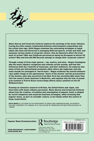 Music Genres and Corporate Cultures explores the seemingly haphazard workings of the music industry, tracing the uneasy relationship between economics and culture; `entertainment corporations' and the artists they sign. Keith Negus examines the contrasting strategies of major labels like Sony and Polygram in managing different genres, artists and staff. How do takeovers affect the treatment of artists? Why has Polygram been perceived as too European to attract US artists? And how did Warner's wooden floors help them sign Green Day? Through in-depth case studies of three major genres; rap, country, and salsa, Negus explores the way in which the music industry recognises and rewards certain sounds, and how this influences both the creativity of musicians, and their audiences. He examines the tension between raps public image as the spontaneous `music of the streets' and the practicalities of the market, and asks why country labels and radio stations promote top-selling acts like Garth Brooks over hard-to-classify artists like Mary Chapin-Carpenter, and how the lack of soundscan systems in Puerto Rican record shops affects salsa music's position on the US Billboard chart. Drawing on over seventy interviews with music industry personnel in Britain and the United States, Music Genres and Corporate Cultures shows how the creation, circulation and consumption of popular music is shaped by record companies and corporate business styles while stressing that music production takes within a broader culture, not totally within the control of large corporations.