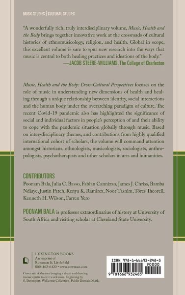 Music, Health and the Body: Cross-Cultural Perspectives focuses on the role of music in understanding new dimensions of health and healing through a unique relationship between identity, social interactions and the human body under the overarching paradigm of culture. The recent Covid-19 pandemic also has highlighted the significance of social and individual factors in people's perception of and their ability to cope with the pandemic situation globally through music. Based on inter-disciplinary themes, and contributions from highly qualified international cohort of scholars, the volume will command attention amongst historians, ethnologists, musicologists, sociologists, anthropologists, psychotherapists and other scholars in arts and humanities.