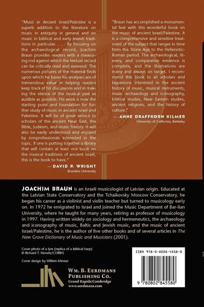 This book contains the first study of the musical culture of ancient Israel/Palestine based primarily on the archaeological record. Noted musicologist Joachim Braun explores the music of the Holy Land region of the Middle East, tracing its form and development from its beginning in the Stone Age to the fourth century A.D. Synopsis An Israeli musicologist (retired, Bar-Ilan U.) provides a first- ever study of the musical culture of ancient Israel/Palestine based on the archeological record. Also drawing from other sources, Braun discusses the meaning and classification of musical instruments in the Bible and from the Stone Age to the Hellenistic- Roman period. Includes many illustrations of artifacts. Indexed by scriptural reference as well as subject and name. Translated from the German. Annotation c. Book News, Inc., Portland, OR