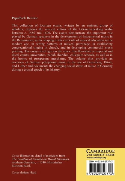 This collection of fourteen essays, written by an eminent group of scholars, explores the musical culture of the German-speaking realm between c. 1450 and 1600.