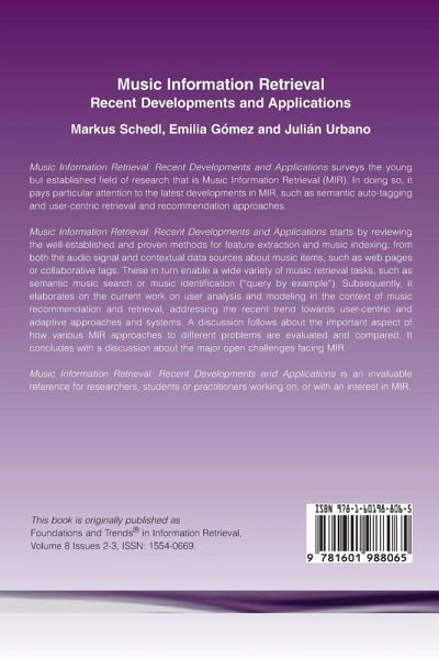 Music Information Retrieval: Recent Developments and Applications surveys the young but established field of research that is Music Information Retrieval (MIR). In doing so, it pays particular attention to the latest developments in MIR, such as semantic auto-tagging and user-centric retrieval and recommendation approaches. Music Information Retrieval: Recent Developments and Applications starts by reviewing the well-established and proven methods for feature extraction and music indexing, from both the audio signal and contextual data sources about music items, such as web pages or collaborative tags. These in turn enable a wide variety of music retrieval tasks, such as semantic music search or music identification ("query by example"). Subsequently, it elaborates on the current work on user analysis and modeling in the context of music recommendation and retrieval, addressing the recent trend towards user-centric and adaptive approaches and systems. A discussion follows about the important aspect of how various MIR approaches to different problems are evaluated and compared. It concludes with a discussion about the major open challenges facing MIR. Music Information Retrieval: Recent Developments and Applications is an invaluable reference for researchers, students or practitioners working on, or with an interest in MIR.