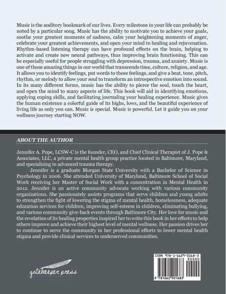 This book will utilize one of the greatest artistic phenomena as a coping and healing tool in your powerful journey to mental wellness. You will explore the melodic meanings of some of the best music of our time while applying their themes of love, empowerment, sadness, reflection, anger, and hope into your plan to improve your life. Music has the ability to motivate you to achieve your goals, soothe your greatest moments of sadness, calm your heightening moments of anger, celebrate your greatest achievements, and open your mind to healing and rejuvenation. Music can also evoke powerful emotions; it can fuel our anger, make us laugh, provide comfort in distress, and sometimes be so beautiful that it makes us cry. Music is the auditory bookmark of our lives. Every milestone in your life can probably be noted by a particular song. Rhythm-based listening therapy can have profound effects on the brain, helping to activate and create new neural pathways, thus improving brain functioning. This can be especially useful in people struggling with depression, trauma, and anxiety. Music is one of those amazing things of our world that transcends time, cultures, religions, and age. It allows you to identify feelings, put words to those feelings, give a beat, tone, pitch, rhythm, or melody to allow your soul to transform an introspective emotion into sound. In its many different forms, music has the ability to pierce the soul, touch the heart, and open the mind to many aspects of life. This book will explore the genres of R&B, jazz, country western, classical, hip hop, rock, pop, trap, instrumental, and gospel to aid in identifying emotions, application of coping skills, and facilitate journaling your healing experience. Music gives the human existence a colorful guide of its highs, lows, and the beautiful experience of living life as only you can. Music is special. Music is powerful. Let it guide you on your wellness journey starting NOW....