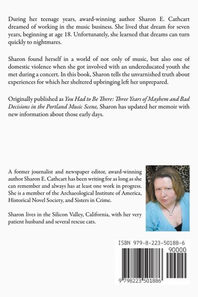 During her teenage years, award-winning author Sharon E. Cathcart dreamed of working in the music business. She lived that dream for seven years, beginning at age 18. Unfortunately, she learned that dreams can turn quickly to nightmares. Sharon found herself in a world of not only of music, but also one of domestic violence when she got involved with an undereducated youth she met during a concert. In this book, Sharon tells the unvarnished truth about experiences for which her sheltered upbringing left her unprepared. Originally published as You Had to Be There: Three Years of Mayhem and Bad Decisions in the Portland Music Scene, Sharon has updated her memoir with new information about those early days.