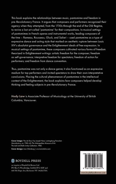 This book explains the relationships between music, pantomime and freedom in pre-Revolutionary France. It argues that composers and performers recognized their agency when they attempted, from the 1730s through the end of the Old Regime, to revive a lost art called 'pantomime' for their compositions. In musical settings of pantomimes in French operas and instrumental works, leading composers of the time - Rameau, Rousseau, Gluck, and Salieri - used pantomime as a type of expressive dance and acting style that marked an aesthetic rupture between Louis XIV's absolutist governance and the Enlightenment ideals of free expression. In musical settings of pantomime, these composers cultivated various forms of freedom theorized in Enlightenment writings: artistic freedom for the composer; freedom as self-governance; interpretive freedom for spectators; freedom of action for performers; and freedom from dance convention. Thus, pantomime was not only a dance genre; it also functioned as an expressive medium for top performers and invited spectators to draw their own interpretative conclusions. Placing the cultural phenomenon of pantomime in the intellectual context of the Enlightenment, the book explains how composers helped develop thinking and feeling subjects in pre-Revolutionary France. HEDY LAW is Associate Professor of Musicology at the University of British Columbia, Vancouver.