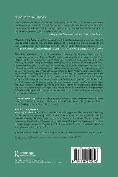 Essays by scholars from around the world explore the means by which music's long-acknowledged potential to persuade, seduce, indoctrinate, rouse, incite, or even silence listeners has been used to advance agendas of power and protest.