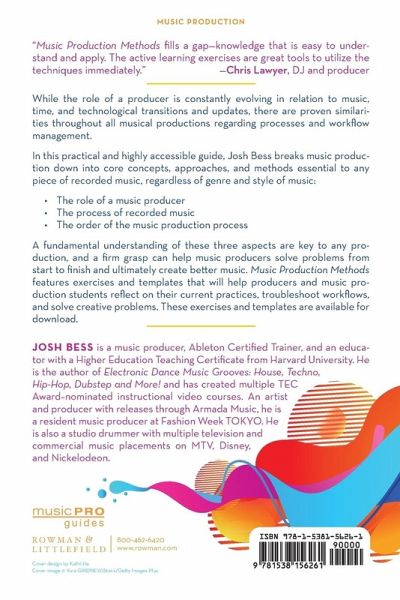 Josh Bess provides a concise and accessible guide to music production and the role of a producer, breaking it down into core concepts, approaches, and methods essential to any piece of recorded music regardless of style or genre. Music Production Methods will help producers troubleshoot workflows and ultimately create better music.