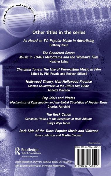 Contents: Foreword Keith Negus; Preface Christophe Beck and John C. King; Introduction: Bay City Rollers. now that's music?: music as cultural code in Buffy the Vampire Slayer Vanessa Knights; Part I Constructing Sound: Music Noise and Silence: Love death curses and reverses (in E minor): music gender and identity in Buffy the Vampire Slayer and Angel Janet K. Halfyard; 'What's my melody?' Music and the deployment of genre in Buffy the Vampire Slayer Louis Niebur; Variations on themes for geeks and heroes: leitmotif style and the musico-dramatic moment Rob Haskins; 'What rhymes with lungs?' When music speaks louder than words Arnie Cox and Rebecca Fÿlöp; Battling the buzz: contesting sonic codes in Buffy the Vampire Slayer Katy Stevens; And the rest is silence: silence and death as motifs in Buffy the Vampire Slayer Gerry Bloustein. Part II Owning Music: Bands Fans and Pop Culture: Bronze things; things of bronze: popular music cultures in Buffy the Vampire Slayer Catherine Driscoll; More than a watcher: Buffy fans amateur music videos romantic slash and intermedia Rob Cover; 'You're just a girl!' Punk rock feminism and the new hero in Buffy the Vampire Slayer Renée T. Coulombe; Punks geeks and Goths: Buffy the Vampire Slayer as a study of popular music demographics on American commercial television Kathryn Hill. Part III Making Music: Buffy the Musical: Not 'the same arrangement': breaking Utopian promises in the Buffy musical Diana Sandars and Rhonda V. Wilcox. 'Give me something to sing about': intertextuality and the audience in 'Once more with feeling' Amy Bauer; Rock television paper musicals scissors: Buffy The Simpsons and parody Paul Attinello; Afterword Anahid Kassabian; Bibliography; Index.