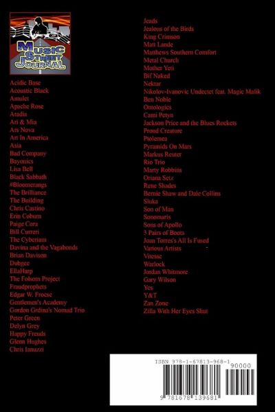 This is the April 2020 (141) issue of Music Street Journal. It includes coverage of the following artists and more: Acidic Base Acoustic Black Amulet Apache Rose Aradia Ari & Mia Ars Nova Art In America Asia Bad Company Bayonics Lisa Bell Black Sabbath The Building Chris Castino Erin Coburn Paige Cora Bill Curreri The Cyberiam Brian Davison Dubgee EllaHarp Fraudprophets Edgar W. Froese Peter Green Delyn Grey Happy Freuds Glenn Hughes Chris Ianuzzi Jeads King Crimson Matt Lande Matthews Southern Comfort Metal Church Mother Yeti Bif Naked Nektar Ben Noble Ontologics Cami Petyn Markus Reuter Rio Trio Marty Robbins Oriana Setz Rene Shades Bernie Shaw and Dale Collins Sluka Son of Man Sons of Apollo Warlock Gary Wilson Yes Y&T Zan Zone While Gary Hill edited and published the book and wrote many of the articles, Greg Olma and Mike Korn also provided articles and Greg Olma supplied concert photos.