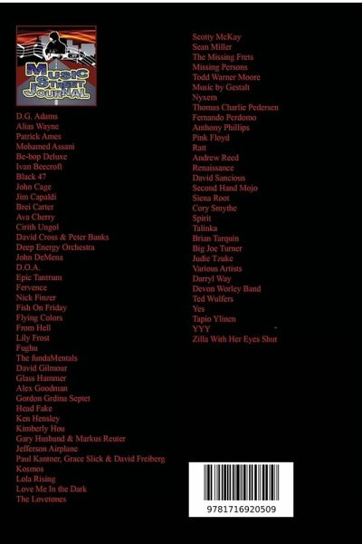 This is the June 2020 (142) issue of Music Street Journal. It includes coverage of the following artists and more: D.G. Adams Alias Wayne Patrick Ames Mohamed Assani Be-bop Deluxe Ivan Beecroft Black 47 John Cage Jim Capaldi Brei Carter Ava Cherry Cirith Ungol David Cross & Peter Banks Deep Energy Orchestra John DeMena D.O.A. Epic Tantrum Fervence Nick Finzer Fish On Friday Flying Colors From Hell Lily Frost Fughu The fundaMentals David Gilmour Glass Hammer Alex Goodman Gordon Grdina Septet Head Fake Ken Hensley Kimberly Hou Gary Husband & Markus Reuter Jefferson Airplane Paul Kantner, Grace Slick & David Freiberg Kosmos Lola Rising Love Me In the Dark The Lovetones Scotty McKay Sean Miller The Missing Frets Missing Persons Todd Warner Moore Music by Gestalt Nyxem Thomas Charlie Pedersen Fernando Perdomo Anthony Phillips Pink Floyd Ratt Andrew Reed Renaissance David Sancious Second Hand Mojo Siena Root Cory Smythe Spirit Talinka Brian Tarquin Big Joe Turner Judie Tzuke Various Artists Darryl Way Devon Worley Band Ted Wulfers Yes Tapio Ylinen YYY Zilla With Her Eyes Shut While Gary Hill edited and published the book and wrote many of the articles.