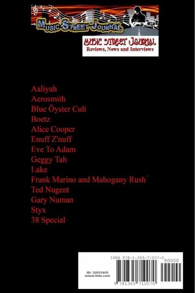 This book contains all the non-prog CD (and one video) reviews published at Music Street Journal in the year 2001. The artists included are: Aaliyah Aerosmith Blue Öyster Cult Boetz Alice Cooper Enuff Z'nuff Eve To Adam Geggy Tah Lake Frank Marino and Mahogany Rush Ted Nugent Gary Numan Styx 38 Special While the bulk of the articles are written by Gary Hill (who compiled the book), Mike Korn also contributed reviews.