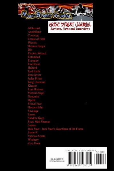 This book features all the heavy metal CD (and one video) reviews done at Music Street Journal in the year 2001. The artists featured include: Alchemist Annihilator Converge Cradle of Filth Diecast Dimmu Borgir Dio Electric Wizard Entombed Evergrey FireHouse Halford Iced Earth Iron Savior Judas Priest King Diamond Kreator Lost Horizon Morbid Angel Nonpoint Opeth Primal Fear Queensrÿche Savatage Saxon Shadow Keep Sixty Watt Shaman Sodom Jack Starr - Jack Starr's Guardians of the Flame Static-X Various Artists Witchery Zero Hour The book is compiled by Gary Hill who also contributed some reviews. Mike Korn contributed many reviews. Arnold Hablewitz also contributed.
