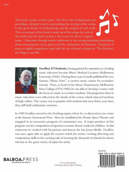 The book consists of three parts. The first is the background story providing a detailed context surrounding the writing of the works. It also gives details of methodology and the origins of each work. The second part of the book is made up of the scripts for each of the works and the third section is the scores for all the original music. Education through artistic endeavour is very strong including entertaining shows featuring the circus, pirates and the celebration of Christmas. Treatment of topics is highly imaginative, especially the use of science fiction in, "The Rockers, the Poppers and Me"
