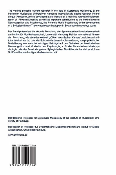The volume presents current research in the field of Systematic Musicology at the Institute of Musicology, University of Hamburg. Internationally leading research like the unique 'Acoustic Camera' developed at the Institute or a real-time hardware implementation of Physical Modeling as well as important contributions to the field of Musical Neurocognition and Psychology, like Forensic Music Psychology, or the development of a Syllogistic Music Theory addresses hot topics in Systematic Musicology today.