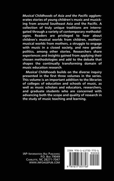 Musical Childhoods of Asia and the Pacific agglomerates stories of young children's music and musicking from around Southeast Asia and the Pacific. A collection of truly unique traditions are interrogated through a variety of contemporary methodologies. Readers are privileged to hear about children's musical worlds from children, mothers' musical worlds from mothers, a struggle to engage with music in a closed society, and new gender politics, among other stories. Researchers share experiences and insights gained from applying their chosen methodologies and add to the debate that shapes the continually transforming domain of music education research. Musical Childhoods builds on the diverse inquiry presented in the first three volumes in the series. This volume is an important addition to the libraries of colleges of education and schools of music, as well as music scholars and educators, researchers, and graduate students who are concerned with advancing both the scope and quality of research in the study of music teaching and learning