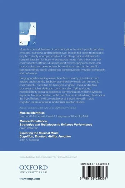 Music is a powerful means of communication. It provides a means by which people can share emotions, intentions, and meanings even though their spoken languages may be mutually incomprehensible. It can also provide a vital lifeline to human interaction for those whose special needs make other means of communication difficult. Music can exert powerful physical effects, can produce deep and profound emotions within us, and can be used to generate infinitely subtle variations of expressiveness by skilled composers and performers. This new addition to the music psychology list brings together leading researchers from a variety of academic and applied backgrounds. It examines how music can be used to communicate and the biological, cognitive, social, and cultural processes which underlie such communication. Taking a broad, interdisciplinary look at all aspects of communication, from the symbolic aspects of musical notation, to the use of music in advertising, the book is the first of its kind. It will be valuable for all those involved in music psychology, music education, and communication studies.