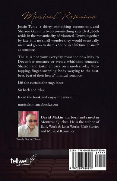 Justin Tyme, a thirty-something accountant, and Sharron Galvin, a twenty-something sales clerk, both reside in the romantic city of Montreal. Drawn together by fate, it is no small wonder they would eventually meet and go on to share a "once in a lifetime chance" at romance. Theirs is not your everyday romance or a May to December romance or even a whirlwind romance. Sharron and Justin embark on a modern-day "toe-tapping, finger-snapping, body swaying to the beat, beat, beat of their hearts" musical romance. Lift the curtain, the stage is set. Sit back and relax. Enjoy the book and enjoy the music...