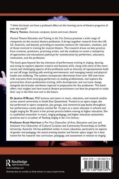 Musical Theatre Education and Training in the 21st Century presents a wide range of viewpoints on the musical theatre profession. It brings together research from the UK, US, Australia, and beyond, providing an essential resource for educators, students, and all those involved in training for musical theatre. The research draws on best practice from creatives, producers, practising artists, and the academy to reveal a multiplicity of approaches and educational pathways for consideration by performers, educators, institutions, and the profession.