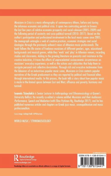 Musicians in Crisis is a music ethnography of contemporary Athens, before and during the infamous economic and political crisis. It spans two contrasting periods in Greece: the last few years of relative economic prosperity and social cohesion (2005-2009) and the following period of austerity and socio-political turmoil (2010-2017). Based on the author's participation and professional involvement in the local music scenes since 2005, the monograph untangles a web of creative practices, economic strategies and social ideologies through the previously unheard voices of Athenian music professionals. The book follows the life stories of freelance musicians of different genders, ages, educational backgrounds and musical genres, while they 'work' and 'play' in Athenian venues, recording studios and classrooms. Adding to the growing literature on precarity and resistance in the creative industries, it traces the effects of unprecedented socioeconomic circumstances on musicians' everyday experience, as well as the actions and solidarities that help them to navigate personal and collective devastation. Through rich and evocative testimonies from the labourers of an industrious popular music scene, Musicians in Crisis contests popular narratives of the Greek predicament as they are reported by political and financial elites through international media. In this process, the book tells a story about how popular music is made in the liminal spaces between East and West, affuence and poverty, harmony and turmoil.