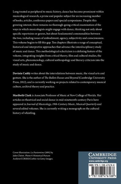 Introduction Davinia Caddy and Maribeth Clark; Part I. Conceptual Studies: 1. J. S. Bach and the dance of humankind John Butt; 2. Dance as 'other': contrasting modes of musical representation Suzanne Aspden; 3. Thinking on our feet: a somatic enquiry into a Haydn minuet Joseph Fort; 4. Making moves in reception studies: music, listening and Loie Fuller Davinia Caddy; Part II. Case Histories: 5. The 'splendid and shameful art': dancing in and around the Wagnerian Gesamtkunstwerk Thomas Grey; 6. Hymnody, dance and the sacred in the illustrated song Marian Wilson Kimber; 7. Pavanes and passepieds in the age of the cancan Carlo Caballero; Part III: Critical Readings: 8. Nijinsky, modernism, repression: the Faune ballet - once again - under analysis David J. Code; 9. Choreographing Mahler songs at the centenary Wayne Heisler, Jr; 10. Embodied heritage: English country dance in Austen screen adaptations Maribeth Clark.
