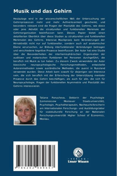 Heutzutage wird in der wissenschaftlichen Welt der Untersuchung von Gehirnprozessen mehr und mehr Aufmerksamkeit geschenkt, und besonders relevant sind die Fragen der Plastizität des Gehirns, wie diese oder jene Aktivität die strukturellen und funktionellen Merkmale der Gehirnorganisation beeinflussen kann. Dieses Papier bietet einen detaillierten Überblick über diese Studien zu strukturellen und funktionellen Merkmalen des Gehirns. Intensive Musikpraxis kann Veränderungen der Hirnaktivität nicht nur auf funktioneller, sondern auch auf anatomischer Ebene verursachen, zur Bildung interfunktionaler Verbindungen beitragen und verschiedene kognitive Prozesse beeinflussen. Der Autor hat eine Studie über die Besonderheiten der interhemisphärischen Organisation der auditiven und motorischen Funktionen bei Personen durchgeführt, die beruflich mit Musik zu tun haben. Zu diesem Zweck verwendete der Autor klassische neuropsychologische Forschungsmethoden, entwickelte Autorenmethoden sowie ausländische Methoden, die zuerst in Russland verwendet wurden. Diese Arbeit kann sowohl für diejenigen von Interesse sein, die sich beruflich mit der Erforschung der Unterstützung mentaler Prozesse durch das Gehirn beschäftigen, als auch für alle, die sich für Neuropsychologie, Fragen der funktionellen Asymmetrie und Plastizität des Gehirns interessieren.