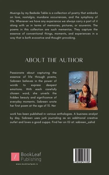 Musings by my Bedside Table is a collection of poetry that embarks on love, nostalgia, mundane occurrences, and the symphony of life. Whenever we have any experience we always carry a part of it along with us in terms of memories, pictures, or souvenirs. The poems in this collection are such mementos. They capture the essence of conventional things, moments, and experiences in a way that is both evocative and thought-provoking.