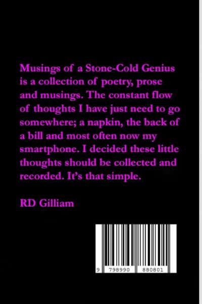 Musings of a Stone-Cold Genius is a collection of poetry, prose and musings. The constant flow of thoughts I have just need to go somewhere; a napkin, the back of bill and most often now my smartphone. I decided these little thoughts should be collected and recorded. It's that simple.