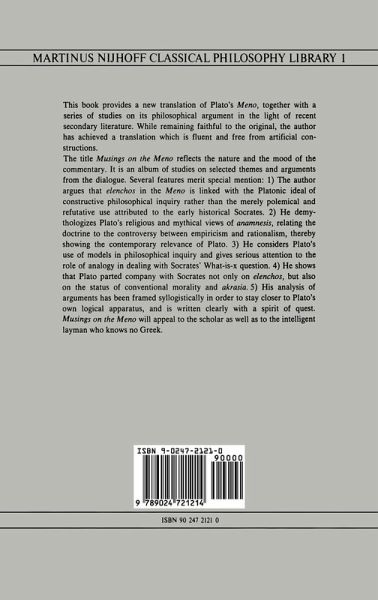 The objectives of this book are to provide a new translation of Plato's M eno together with a series of studies on its philcisophical argument in the light of recent secondary literature. My translation is based mainly on the Oxford Classical Text, 1. Burnet's Platonis Opera (Oxford Clarendon Press 1900) Vol. III. In conjunction with this I have made extensive use of R.S. Bluck's Plato's Meno (Cam bridge University Press, 1964). At critical places in the dialogue I have also consulted A. Croiset's Gorgias, Menon (Bude text). My debt ~o two other sources will be clearly in evidence. They are E.S. Thompson's Plato's Meno (London, MacMillan 1901), and St. George Stock's The Meno of Plato (Oxford Clarendon Press, 1894). One of the greatest difficulties facing a translator is to achieve a balance between accuracy and elegance. Literal translations are more likely to be accurate, but, alas, they also tend to be duller. Free translations run into the opposite danger of paying for elegance and liveliness with the coin of inaccuracy. Another hurdle, for a translator of a Platonic dialogue, is posed by the challenge to maintain the conversational pattern and fast moving character of the discussion. This is easier where the exchang~s are short, but much more difficult where Socrates gets somewhat long-winded.