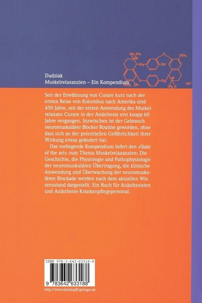 Das vorliegende Kompendium liefert den "State of the art" zum Thema Muskelrelaxanzien: Die Geschichte, die Physiologie und Pathophysiologie der neuromuskulären Übertragung, die klinische Anwendung und Überwachung der neuromuskulären Blockade werden nach dem aktuellen Wissensstand dargestellt. Ein Buch für Anästhesisten und Anästhesie-Krankenpflegepersonal.