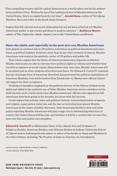 Reveals the important role of Muslim Americans in American politics Since the 1950s, and especially in the post-9/11 era, Muslim Americans have played outsized roles in US politics, sometimes as political dissidents and sometimes as political insiders. However, more than at any other moment in history, Muslim Americans now stand at the symbolic center of US politics and public life. This volume argues that the future of American democracy depends on whether Muslim Americans are able to exercise their political rights as citizens and whether they can find acceptance as social equals. Many believe that, over time, Muslim Americans will be accepted just as other religious minorities have been. Yet Curtis contends that this belief overlooks the real barrier to their full citizenship, which is political rather than cultural. The dominant form of American liberalism has prevented the political assimilation of American Muslims, even while leaders from Eisenhower to Obama have offered rhetorical support for their acceptance. Drawing on examples ranging from the political rhetoric of the Nation of Islam in the 1950s and 1960s to the symbolic use of fallen Muslim American service members in the 2016 election cycle, Curtis shows that the efforts of Muslim Americans to be regarded as full Americans have been going on for decades, yet never with full success. Curtis argues that policies, laws, and political rhetoric concerning Muslim Americans are quintessential American political questions. Debates about freedom of speech and religion, equal justice under law, and the war on terrorism have placed Muslim Americans at the center of public discourse. How Americans decide to view and make policy regarding Muslim Americans will play a large role in what kind of country the United States will become, and whether it will be a country that chooses freedom over fear and justice over prejudice.