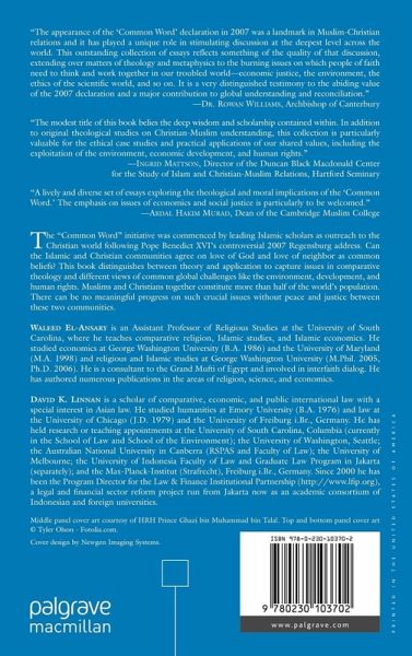 "A lively and diverse set of essays exploring the theological and moral implications of the Common Word. The emphasis on issues of economics and social justice is particularly to be welcomed." - Abdal Hakim Murad, Dean, the Cambridge Muslim College