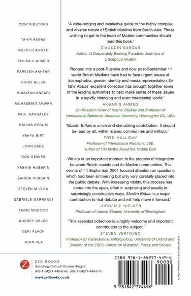 Foreword - Professor Tariq Modood Part I: From Islam to British Muslims? 1. British South Asian Muslims: State and Multicultural Society - Tahir Abbas 2. Muslims in the UK - Ceri Peach 3. Muslims in Britain: Issues, Policy and Practice - Muhammad Anwar Part II: Islamophobia, Identity Politics and State Multiculturalism 1. From Race to Religion: The New Face of Discrimination - Chris Allen 2. Negotiating British Citizenship and Muslim Identity - Ron Geaves 3. In the Shadow of September 11: Multiculturalism and Identity Politics - Stephen Lyon 4. Lobbying and Marching: British Muslims and the State - Jonathan Birt Part III: Media Representation, Gender and Radical Islam 1. Reading between the Lines - Muslims and the Media - Tahira Sameera Ahmed 2. Educating Muslim Girls: Do Mothers Have Faith in the State Sector? - Audrey Osler and Zahida Hussain 3. Attitudes to Jihad, Martyrdom and Terrorism among British Muslims - Humayun Ansari 4. '(Re)turn to Religion' and Radical Islam - Parveen Akhtar Part IV: Temporal and Spatial Ethnic and Religious Identities 1. All Quiet on the Eastern Front? Bangladeshi Reactions in Tower Hamlets - Halima Begum and John Eade 2. Tower Hamlets - Insulation in Isolation - Nilufar Ahmed 3. Flying the Flag for England? Citizenship, Religion and Cultural Identity among British Pakistani Muslims - Yasmin Hussain and Paul Bagguley 4. Pakistanis in Northern Ireland in the aftermath of September 11 - Gabriel Marccini Afterword - John Rex