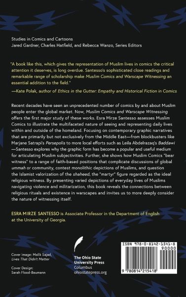 Recent decades have seen an unprecedented number of comics by and about Muslim people enter the global market. Now, Muslim Comics and Warscape Witnessing offers the first major study of these works. Esra Mirze Santesso assesses Muslim comics to illustrate the multifaceted nature of seeing and representing daily lives within and outside of the homeland. Focusing on contemporary graphic narratives that are primarily but not exclusively from the Middle East-from blockbusters like Marjane Satrapi's Persepolis to more local efforts such as Leila Abdelrazaq's Baddawi-Santesso explores why the graphic form has become a popular and useful medium for articulating Muslim subjectivities. Further, she shows how Muslim comics "bear witness" to a range of faith-based positions that complicate discussions of global ummah or community, contest monolithic depictions of Muslims, and question the Islamist valorization of the shaheed, the "martyr" figure regarded as the ideal religious witness. By presenting varied depictions of everyday lives of Muslims navigating violence and militarization, this book reveals the connections between religious rituals and existence in warscapes and invites us to more deeply consider the nature of witnessing itself.