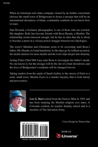 When an American real estate company owned by an Arabic consortium chooses the small town of Bridgewater to house a mosque that will be an international showpiece of Islam, community residents do not know how to react. Dan Howard, a freelance photographer, is one of those who are worried. His daughter, Beth, has become friends with Reza Husain, a Muslim. The relationship seems innocent enough, but he has no idea that she is about to become a pawn in a vicious power struggle between two ideologies. The town's Muslims and Christians seem to be coexisting but then Reza's father, Mr. Husain, is found murdered. As the days go by without an arrest, the media clamors for more details and the town slips deeper into disarray. Acting Police Chief Bill Lacy asks Reza to investigate his father's death. No one knows it, but the mosque will be the site of a final showdown, and the lives of Bridgewater's residents will be changed forever. Taking readers from the sands of Saudi Arabia, to the streets of Paris to a rural, small town, Muslim Fears is a murder mystery that is both timely and provocative.