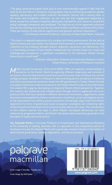 "This book is a nuanced exploration of a complex and timely phenomenon. By her judicial blend of theory and case studies, Lily Zubaidah Rahim presents an informative and exciting collection on the interplay between Islamic religiosity, secularism and democracy. This is a fascinating account of how Muslim intellectuals and activists break the mold and challenge pre-conceptions - a significant contribution to the literature. Muslim Secular Democracy is a must-read." - Shahram Akbarzadeh, Australian Research Council Future Fellow, University of Melbourne, Australia