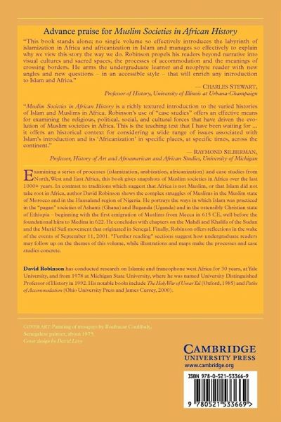 This book examines a series of processes (Islamization, Arabization, Africanization) and case studies from the Muslim societies of Africa over the last millennium. In contrast to traditions which suggest that Islam did not take root in Africa, Robinson shows the complex struggles of Muslims thoughout the continent: in Morocco and in the Hausaland region of Nigeria, in the societies of Ashanti (Ghana) and Buganda (Uganda), and in the ostensibly Christian state of Ethiopia. He concludes with chapters on the Mahdi and Khalifa of the Sudan and the Murid Sufi movement.