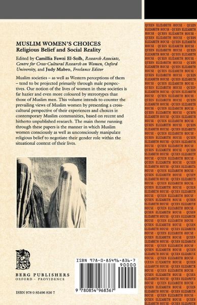 Introduction C.F. El-Solh and J. Mabro; separation and reconciliation - marital conflict among the Muslim poor in Cairo H. Watson; strategies of selection - differing notions of marriage in Iran and Morocco Z. Mir-Hosseini; Islam and gender - the Nigerian case G. Thomas-Emeagwali; separate but more than equal - Muslim women at the Cape R. Ridd; mixed motives - Islam nationalism and Mevluds in an unstable Yugoslavia C. Soragbji; guardians of the faith? - gender and religion in an (ex) Soviet Tajik village G. Tett; Islam in Azerbaijan - the position of women T. Dragadze; women's labour in the Bangladesh garment industry - choices and constraints N. Kabeer; gender relations and Islamic resurgence in Mindanao Southern Philippines J. Siapno.