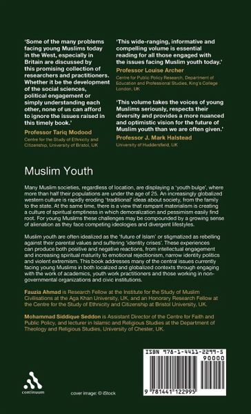 Many Muslim societies, regardless of location, are displaying a 'youth bulge', where more than half their populations are under the age of 25. An increasingly globalized western culture is rapidly eroding 'traditional' ideas about society, from the family to the state. At the same time, there is a view that rampant materialism is creating a culture of spiritual emptiness in which demoralization and pessimism easily find root. For young Muslims these challenges may be compounded by a growing sense of alienation as they face competing ideologies and divergent lifestyles. Muslim youth are often idealized as the 'future of Islam' or stigmatized as rebelling against their parental values and suffering 'identity crises'. These experiences can produce both positive and negative reactions, from intellectual engagement and increasing spiritual maturity to emotional rejectionism, narrow identity politics and violent extremism. This book addresses many of the central issues currently facing young Muslims in both localized and globalized contexts through engaging with the work of academics, youth work practitioners and those working in non-governmental organizations and civic institutions.