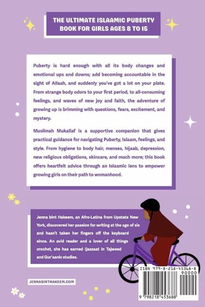 THE ULTIMATE ISLAAMIC PUBERTY BOOK FOR GIRLS AGES 8 TO 15 Puberty is hard enough with all its body changes and emotional ups and downs; add becoming accountable in the sight of Allaah, and suddenly you've got a lot on your plate. From strange body odors to your first period, to all-consuming feelings, and waves of new joy and faith, the adventure of growing up is brimming with questions, fears, excitement, and mystery. Muslimah Mukallaf is a supportive companion that gives practical guidance for navigating Puberty, Islaam, feelings, and style. From hygiene to body hair, menses, hijaab, depression, new religious obligations, skincare, and much more; this book offers heartfelt advice through an Islaamic lens to empower growing girls on their path to womanhood. ALL THE HEAVY HITTING TOPICS: Period care from an Islamic pov In depth hygiene, shaving, hair, and skincare routines Hijab according to the Quran and sunnah Managing depression & anxiety from an Islamic pov Islamic obligations explained The safe and unsafe touch conversion And more!