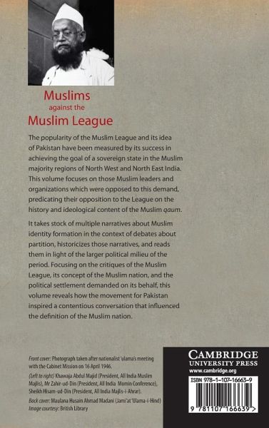 The popularity of the Muslim League and its idea of Pakistan has been measured in terms of its success in achieving the goal of a sovereign state in the Muslim majority regions of North West and North East India. It led to an oversight of Muslim leaders and organizations which were opposed to this demand, predicating their opposition to the League on its understanding of the history and ideological content of the Muslim nation. This volume takes stock of multiple narratives about Muslim identity formation in the context of debates about partition, historicizes those narratives, and reads them in the light of the larger political milieu of the period. Focusing on the critiques of the Muslim League, its concept of the Muslim nation, and the political settlement demanded on its behalf, it studies how the movement for Pakistan inspired a contentious, influential conversation on the definition of the Muslim nation.