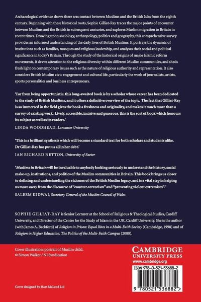 Sophie Gilliat-Ray is Senior Lecturer at the School of Religious & Theological Studies, Cardiff University, and Director of the Centre for the Study of Islam in the UK, Cardiff University. She is the author (with James Beckford) of Religion in Prison: Equal Rites in a Multi-Faith Society (Cambridge, 1998) and of Religion in Higher Education: The Politics of the Multi-Faith Campus (2000).