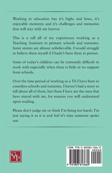 Working in education has it's highs and lows, it's enjoyable moments and it's challenges and memories that will stay with me forever. This is a tell all of my experiences working as a Teaching Assistant in Primary Schools and Nurseries. Some stories are almost unbelievable. I would struggle to believe them myself if I hadn't been there in person. Some of today's children can be extremely difficult to work with especially when there is little or no support from staff and Head Teachers in schools. Over the time period of working as a TA I have been to countless schools and nurseries. I haven't had a story to tell about all of them, but those I have are the ones that have stayed with me, for reasons you will understand upon reading. Please don't judge me or think I'm being too harsh. I'm just saying it as it is and feel it's time someone spoke out.