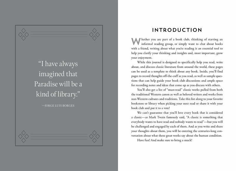 A handsome and elegant reader's journal for book lovers and book club goers of all levels. Within its 144 pages you'll find a checklist of "must-read" books, guided content to help readers focus their literary explorations, sample book club questions, and dozens of evocative quotes from classic authors. Along with the informative front matter, engaging questions are sprinkled throughout the journal to be addressed as the pages fill--from fun questions (who would you cast in a movie of this book?) to the reflective (what one sentence from the book stands out to you?).