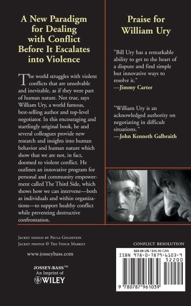 The world struggles with violent conflicts that are unsolvable and inevitable, as if they were part of human nature. Not true, says William Ury, a world famous, best-selling author and top-level negotiator. In this encouraging and startlingly original book, he and several colleagues provide new research and insights into human behavior and human nature which show that we are not, in fact, doomed to violent conflict. He outlines an innovative program for personal and community empowerment called The Third Side, which shows how we can intervene-both as individuals, and within organizations-to support healthy conflict while preventing destructive confrontation. Praise for William L. Ury "William Ury is an acknowledged authority on negotiating in difficult situations." -- John Kenneth Galbraith "Bill Ury has a remarkable ability to get to the heart of a dispute and find simple but innovative ways to resolve it." -- President Jimmy Carter