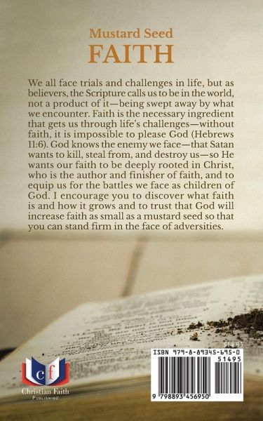 We all face trials and challenges in life, but as believers, the Scripture calls us to be in the world, not a product of it--being swept away by what we encounter. Faith is the necessary ingredient that gets us through life's challenges--without faith, it is impossible to please God (Hebrews 11:6). God knows the enemy we face--that Satan wants to kill, steal from, and destroy us--so He wants our faith to be deeply rooted in Christ, who is the author and finisher of faith, and to equip us for the battles we face as children of God. I encourage you to discover what faith is and how it grows and to trust that God will increase faith as small as a mustard seed so that you can stand firm in the face of adversities.