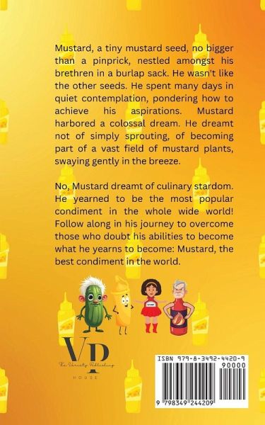 Embark on a whimsical journey with Mighty Mustard, a tiny mustard seed with enormous dreams! Nestled amongst his fellow seeds in a burlap sack, Mustard is unlike any other. While his companions are content with their fate of sprouting into plain mustard plants, Mustard yearns for something greater: culinary stardom! He dreams of becoming the most popular condiment in the world, transforming ordinary meals into extraordinary experiences. In "Mustard's Mighty Adventures", join Mustard as he bravely navigates the bustling farmer's market, filled with towering vegetables and vibrant aromas. Faced with doubt and ridicule from other seeds, Mustard's determination shines through as he resolves to prove his worth. With every jolt and bump in the burlap sack, he imagines himself dazzling customers, crowning hot dogs, and elevating burgers with his unique flavor. As he tumbles out into the chaos of the market, Mustard encounters a host of colorful characters, including the wise old pickle Pippin, the sassy ketchup Katy, and the grumpy yet fiery hot sauce Fernando. Each character brings their own flair to the adventure, and together they form an unexpected alliance. Facing challenges, including a gigantic sandwich that threatens their newly formed friendship, Mustard learns the true power of teamwork, resilience, and the importance of believing in oneself. This delightful tale unfolds with laughter, heartwarming moments, and valuable lessons about friendship and self-acceptance. Mustard discovers that even the smallest of ingredients can leave a lasting impact on the world. As he and his friends embark on culinary escapades, they not only showcase their unique flavors but also inspire others to embrace their own individuality. "Mustard's Mighty Adventures" is more than just a story about a condiment; it is a celebration of diversity, collaboration, and the magic that happens when we dare to dream big. From the farmer's market to grand picnics, and ultimately to a culinary showdown, Mustard's journey is a testament to the belief that greatness comes in all sizes. Join Mustard and his friends as they navigate the ups and downs of their culinary odyssey, and discover how the journey of self-discovery can lead to unexpected friendships and delicious adventures. Will Mustard achieve his dream of becoming the world's favorite condiment? Dive into this enchanting tale filled with flavor, fun, and the unforgettable spirit of camaraderie!