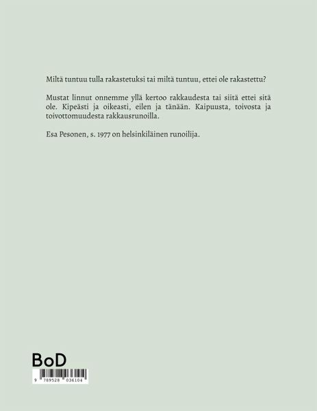 Miltä tuntuu tulla rakastetuksi tai miltä tuntuu, ettei ole rakastettu? Mustat linnut onnemme yllä kertoo rakkaudesta ja siitä ettei sitä ole. Kipeästi ja oikeasti, eilen ja tänään. Kaipuusta, toivosta ja toivottomuudesta rakkausrunoilla.