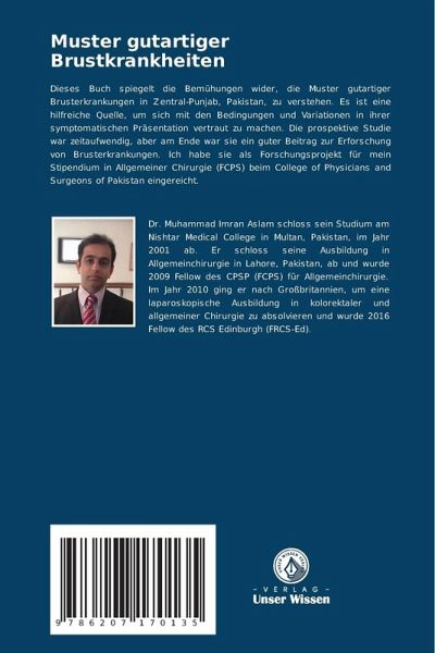 Dieses Buch spiegelt die Bemühungen wider, die Muster gutartiger Brusterkrankungen in Zentral-Punjab, Pakistan, zu verstehen. Es ist eine hilfreiche Quelle, um sich mit den Bedingungen und Variationen in ihrer symptomatischen Präsentation vertraut zu machen. Die prospektive Studie war zeitaufwendig, aber am Ende war sie ein guter Beitrag zur Erforschung von Brusterkrankungen. Ich habe sie als Forschungsprojekt für mein Stipendium in Allgemeiner Chirurgie (FCPS) beim College of Physicians and Surgeons of Pakistan eingereicht.