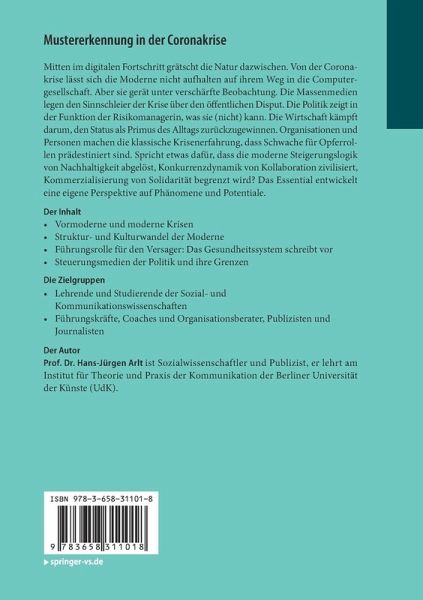 Mitten im digitalen Fortschritt grätscht die Natur dazwischen. Von der Coronakrise lässt sich die Moderne nicht aufhalten auf ihrem Weg in die Computergesellschaft. Aber sie gerät unter verschärfte Beobachtung. Die Massenmedien legen den Sinnschleier der Krise über den öffentlichen Disput. Die Politik zeigt in der Funktion der Risikomanagerin, was sie (nicht) kann. Die Wirtschaft kämpft darum, den Status als Primus des Alltags zurückzugewinnen. Organisationen und Personen machen die klassische Krisenerfahrung, dass Schwache für Opferrollen prädestiniert sind. Spricht etwas dafür, dass die moderne Steigerungslogik von Nachhaltigkeit abgelöst, Konkurrenzdynamik von Kollaboration zivilisiert, Kommerzialisierung von Solidarität begrenzt wird? Das Essential entwickelt eine eigene Perspektive auf Phänomene und Potentiale.