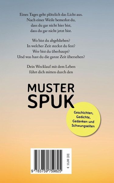 Eines Tages geht plötzlich das Licht aus. Nach einer Weile bemerkst du, dass du gar nicht hier bist, dass du gar nicht jetzt bist. Wo bist du abgeblieben? In welcher Zeit steckst du fest? Wer bist du überhaupt? Und was hast du die ganze Zeit übersehen? Dein Wecklauf mit dem Leben führt dich mitten durch den Musterspuk. - Geschichten, Gedichte, Gedanken und Schwungseiten
